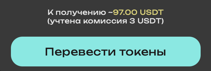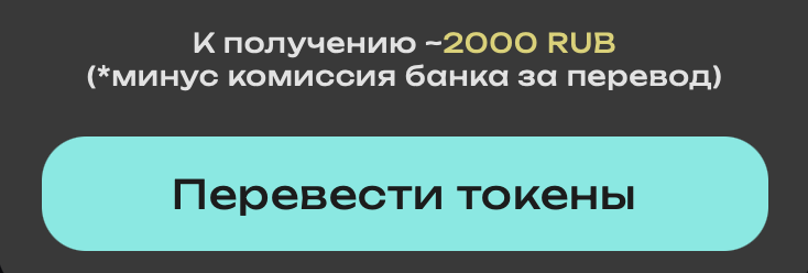 - После заполнения всех полей нажмите кнопку «Перевести токены». В течение 5 рабочих дней средства поступят на вашу карту.