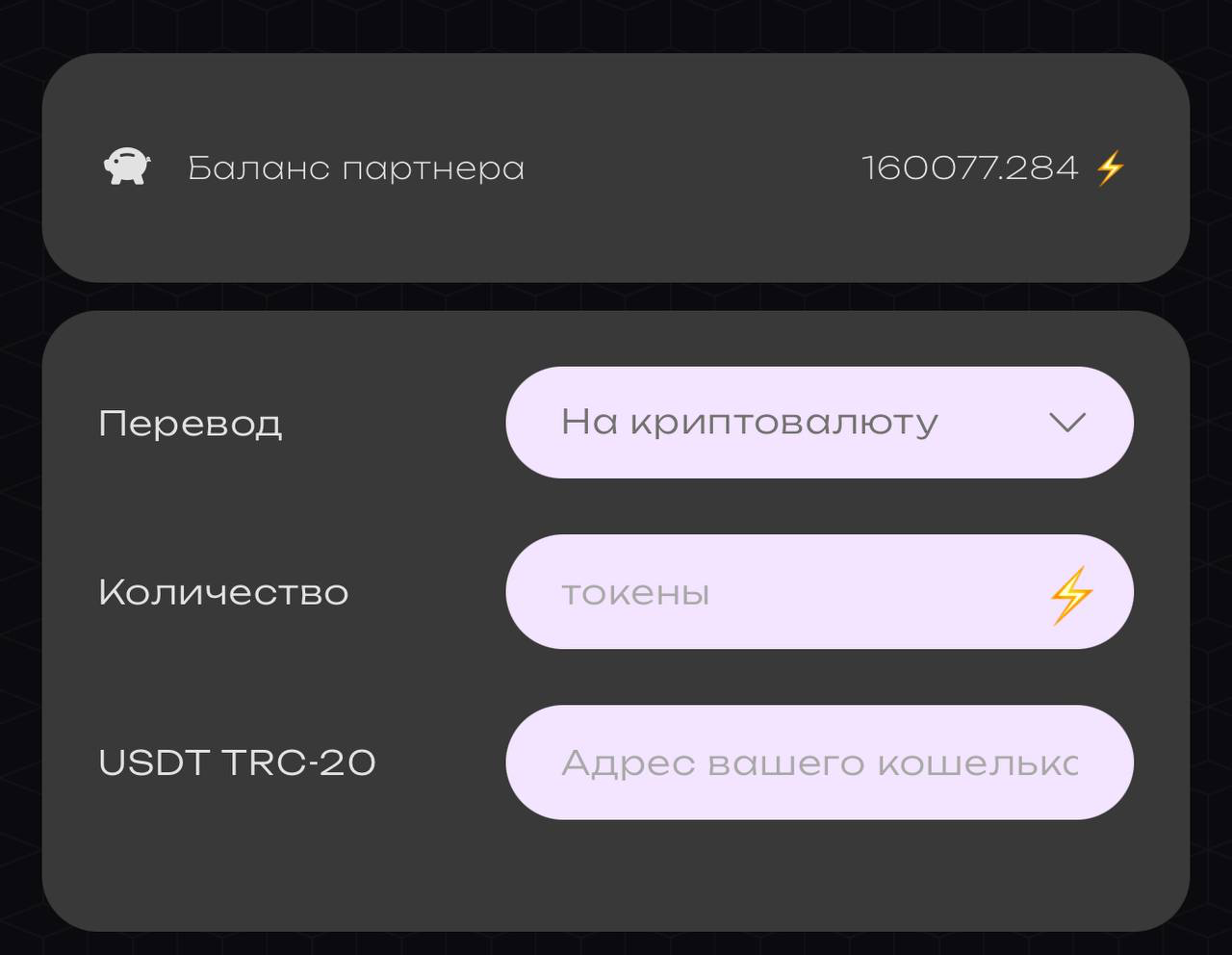Баланс партнера - это сумма партнерских токенов, доступная для вывода, которую партнер накопил в результате привлечения новых клиентов или пользователей по своей реферальной ссылке.