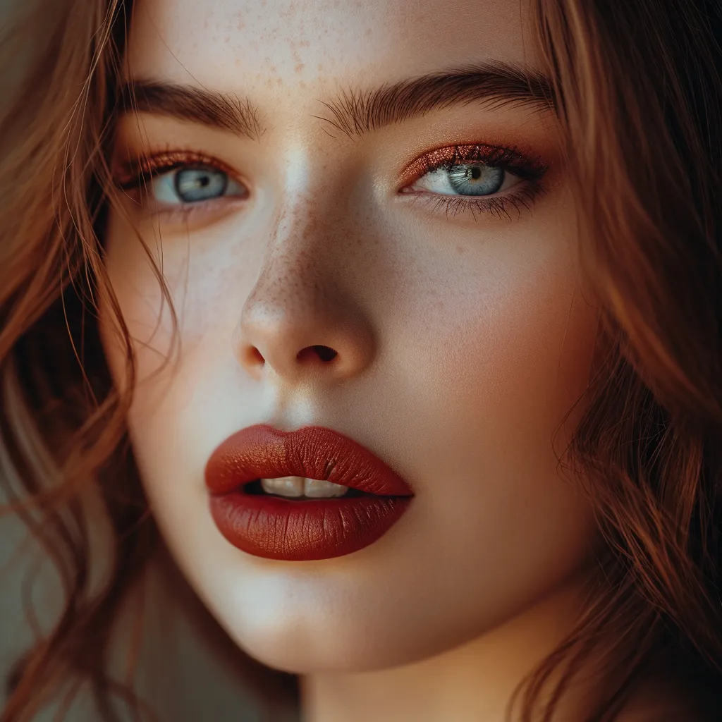 Closeup portrait photo of a gorgeous young woman with cupid’s bow lips and Matte Lipstick