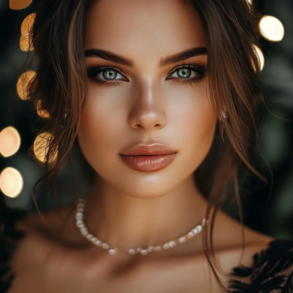 Closeup portrait photo of a gorgeous young woman with Glamorous Evening Makeup