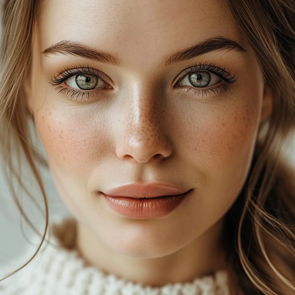 Closeup portrait photo of a gorgeous young woman with Minimalist Chic Makeup