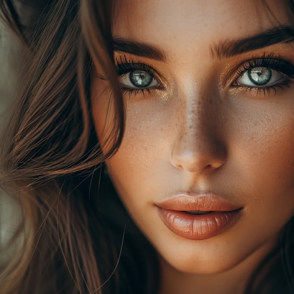 Closeup portrait photo of a gorgeous young woman with Natural Daytime Makeup