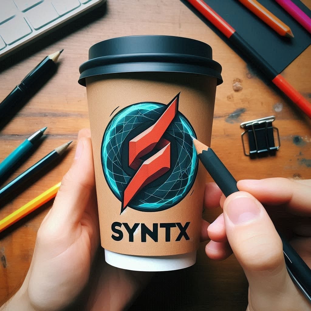 Логотип "SYNTX" на стакане из под кофе