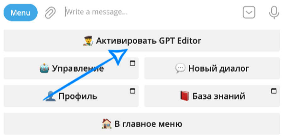🏠 Главное меню > 💡 GPTs/Claude/Gemini > 👨🎨 Активировать GPT Editor