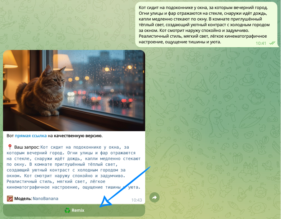 После редактирования изображения вы можете продолжить работу с функцией Remix уже на основе новой генерации, по тому же принципу.
