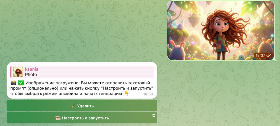 ΠΠ°ΠΏΡΠΎΡ Π±ΡΠ΄Π΅Ρ ΠΎΡΠΏΡΠ°Π²Π»Π΅Π½ Π½Π° ΠΎΠ±ΡΠ°Π±ΠΎΡΠΊΡ, ΠΈ ΠΏΠΎ Π·Π°Π²Π΅ΡΡΠ΅Π½ΠΈΡ Π³Π΅Π½Π΅ΡΠ°ΡΠΈΠΈ Π³ΠΎΡΠΎΠ²ΡΠΉ ΡΠ΅Π·ΡΠ»ΡΡΠ°Ρ ΠΏΠΎΡΠ²ΠΈΡΡΡ Π² Π²Π°ΡΠ΅ΠΌ Π΄ΠΈΠ°Π»ΠΎΠ³Π΅ Ρ ΡΠ°Ρ-Π±ΠΎΡΠΎΠΌ.