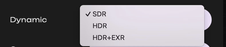 При работе в моделях Ray 3 и Ray 3 Reasoning у вас есть возможность выбрать динамический диапазон.