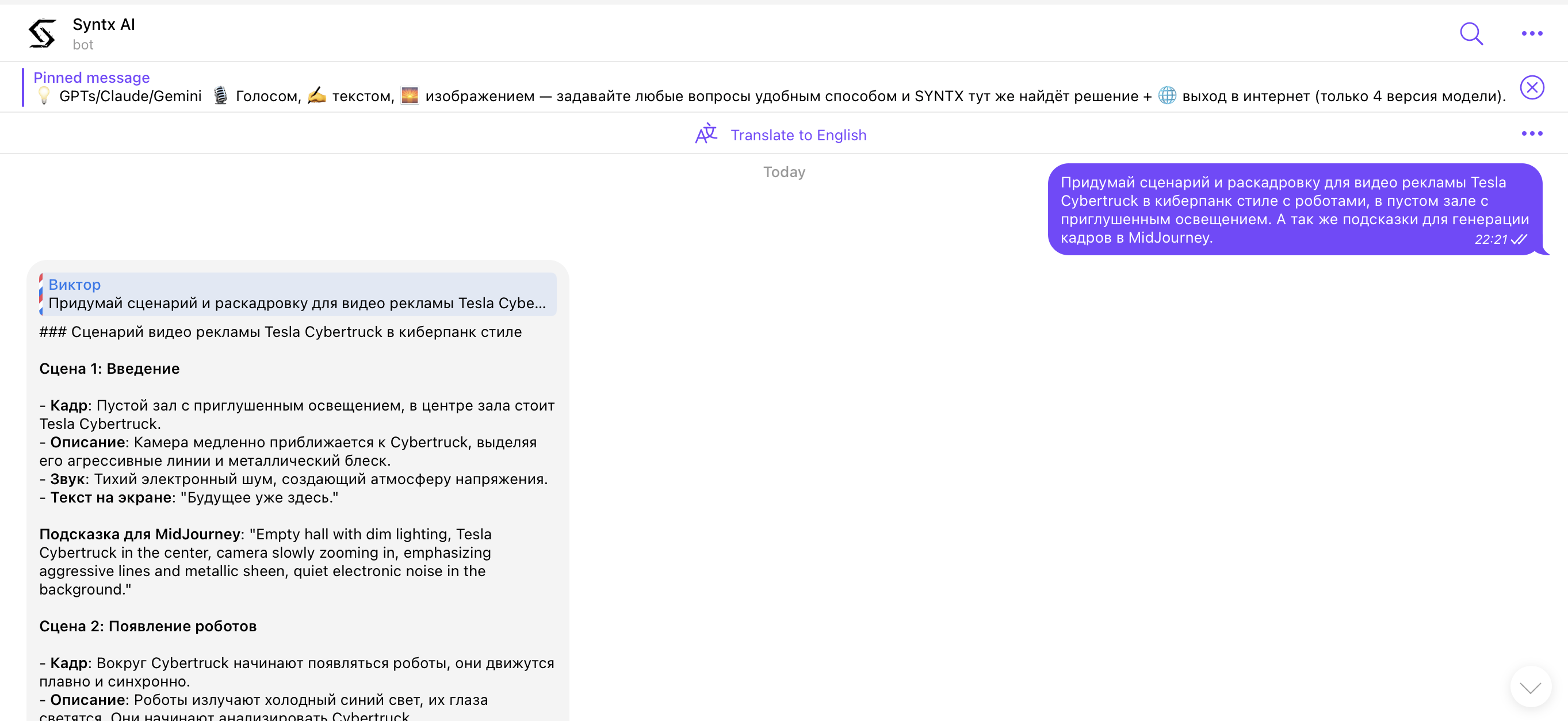 1. GPT-4o написал сцСнарий, раскадровку для Π²ΠΈΠ΄Π΅ΠΎ ΠΈ тСкстовыС подсказки для MidJourney