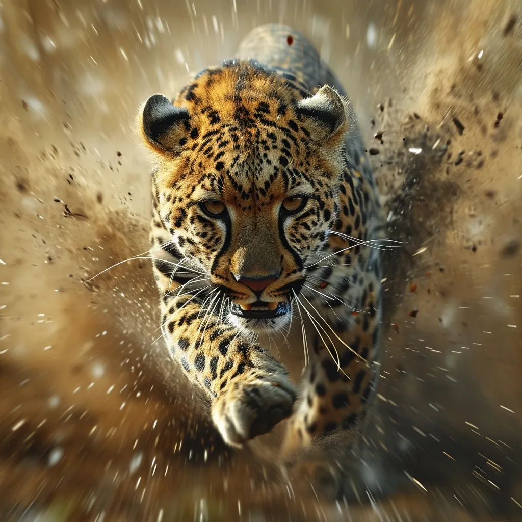 Motion capture Захват движения на фотографии - это техника, которая позволяет передать ощущение движения и динамики в статическом изображении. Она широко используется в фотографии спорта, акциях и других ситуациях, где движение является ключевым элементом. Промпт ведет себя очень по разному в зависимости от объекта. Например, леопарда он действительно рисует в Motion capture , а человека и собаку, как в примере ниже, рисует с определенными эффектами.