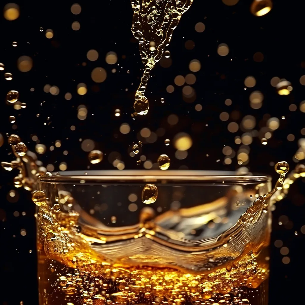 liquid gold falling into a glass, close-up, highly detailed, high-speed photography, cinematic