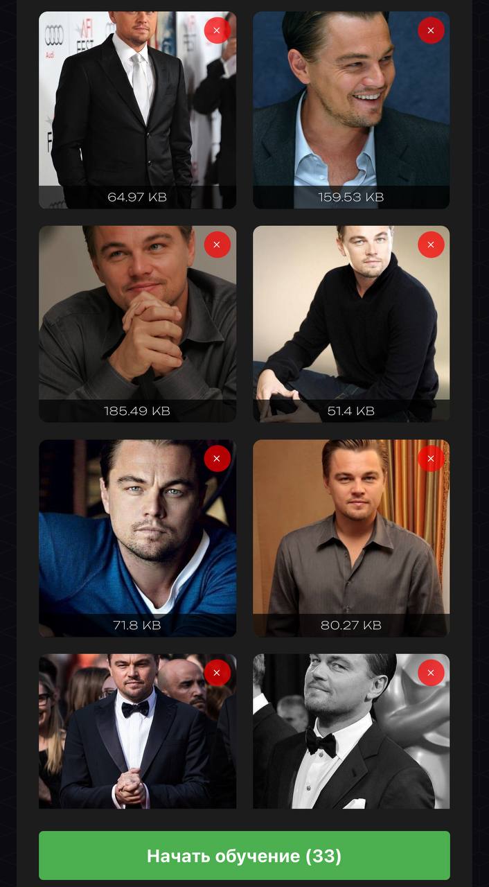 После загрузки изображений убедитесь, что все файлы успешно добавлены. Иногда отдельные изображения могут не загрузиться из-за неподходящего формата. Чтобы проверить это, обратите внимание на число добавленных изображений, которое отображается в скобках рядом с кнопкой «Начать обучение». Это число показывает, сколько изображений было загружено корректно. Если вы заметили несоответствие, проверьте свои файлы и убедитесь, что они соответствуют требованиям.