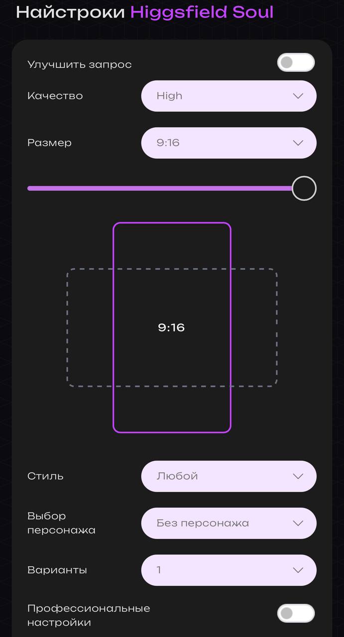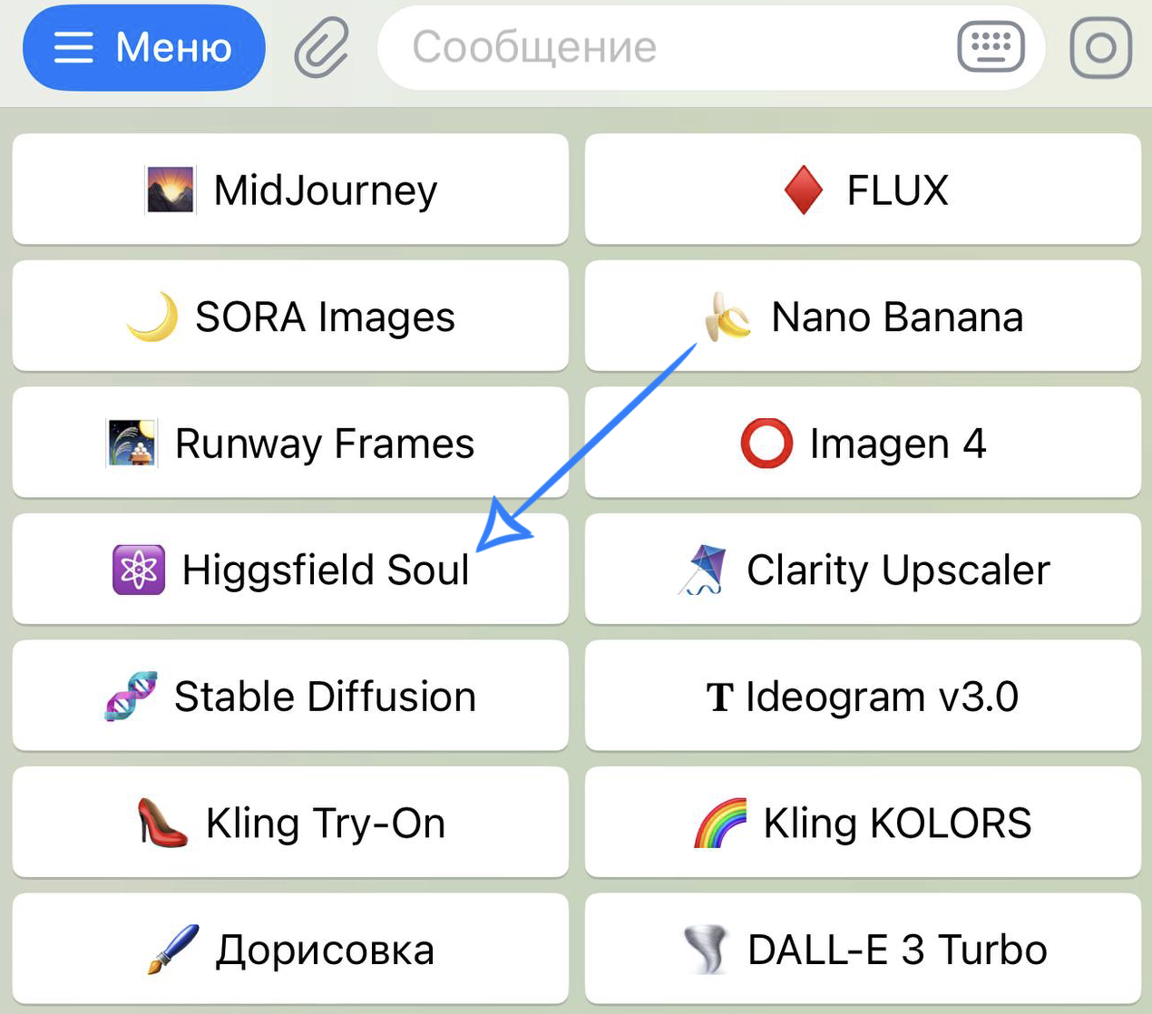 🏠 Главное меню > 🎨 Дизайн с ИИ > ⚛️ Higgsfield Soul