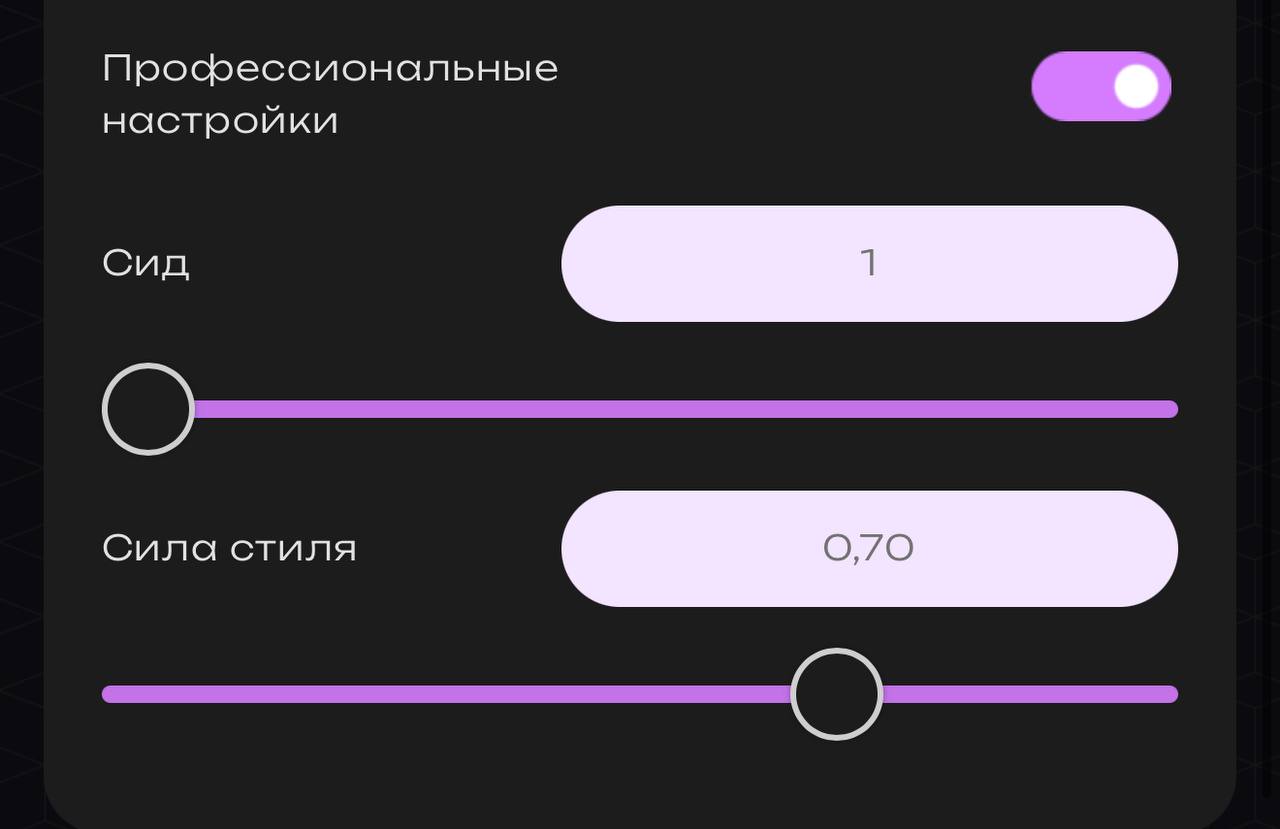 Данные настройки открывают вам доступ к таким параметрам как seed, сила персонажа и сила стиля.