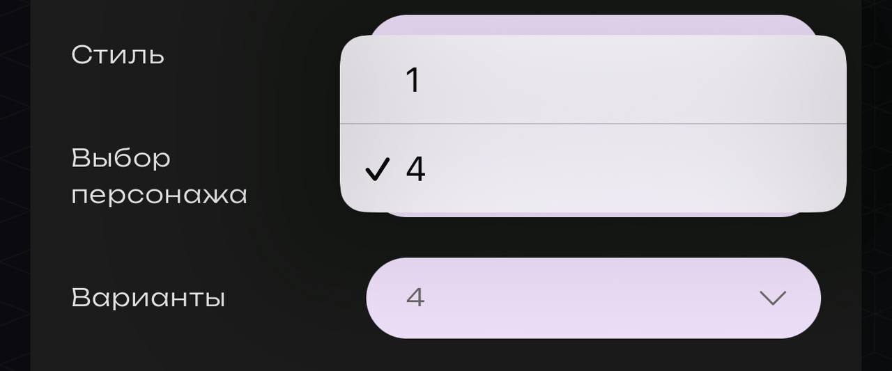 Вы можете выбрать формат генерации: получить одно изображение или сразу четыре варианта на выбор. При выборе четырёх генераций одновременно у вас будет больше возможностей для сравнения и выбора наиболее подходящего изображения. Обратите внимание, что стоимость в этом случае увеличивается пропорционально в четыре раза.