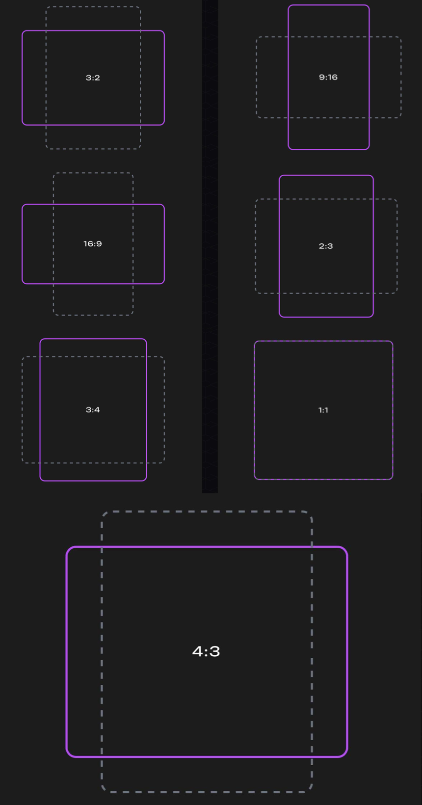 Вам предоставлено 7 различных соотношений сторон. Выберите одно из желаемых и ваше будущее изображение будет сгенерировано в соответствии с вашим выбором.