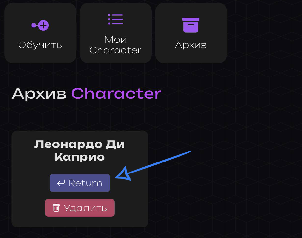 В данный раздел попадают модели, которые были удалены из раздела “Мои Character”.