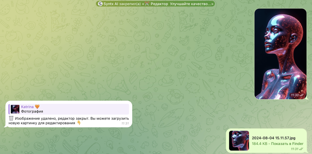 ❣️ При использовании функции восстановления резкости, качество изображения автоматически улучшается и его разрешение увеличивается. Однако, при этом становится недоступной возможность применения функций увеличения качества в 2 и 4 раза.