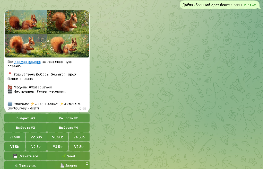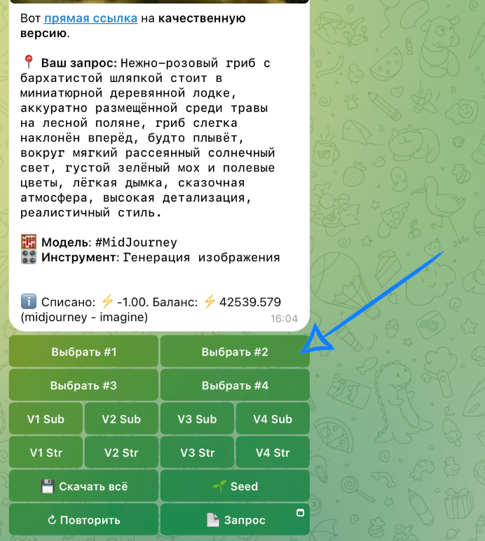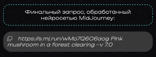 Π§ΡΠΎΠ±Ρ ΡΠ²ΠΈΠ΄Π΅ΡΡ ΡΠΈΠ½Π°Π»ΡΠ½ΡΠΉ Π·Π°ΠΏΡΠΎΡ, ΠΊΠΎΡΠΎΡΡΠΉ Π±ΡΠ» ΠΎΠ±ΡΠ°Π±ΠΎΡΠ°Π½ Π½Π΅ΠΉΡΠΎΡΠ΅ΡΡΡ MidJourney, Π½Π°ΠΆΠΌΠΈΡΠ΅ Π½Π° ΠΊΠ½ΠΎΠΏΠΊΡ Β«π ΠΠ°ΠΏΡΠΎΡΒ» Π² ΠΏΠΎΠ»ΡΡΠ΅Π½Π½ΠΎΠΌ ΡΠΎΠΎΠ±ΡΠ΅Π½ΠΈΠΈ Ρ ΠΈΠ·ΠΎΠ±ΡΠ°ΠΆΠ΅Π½ΠΈΠ΅ΠΌ.