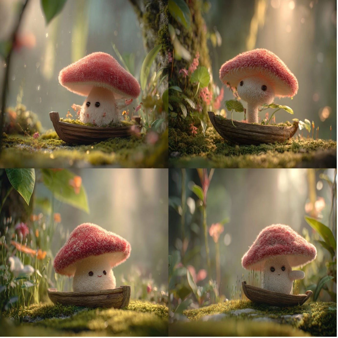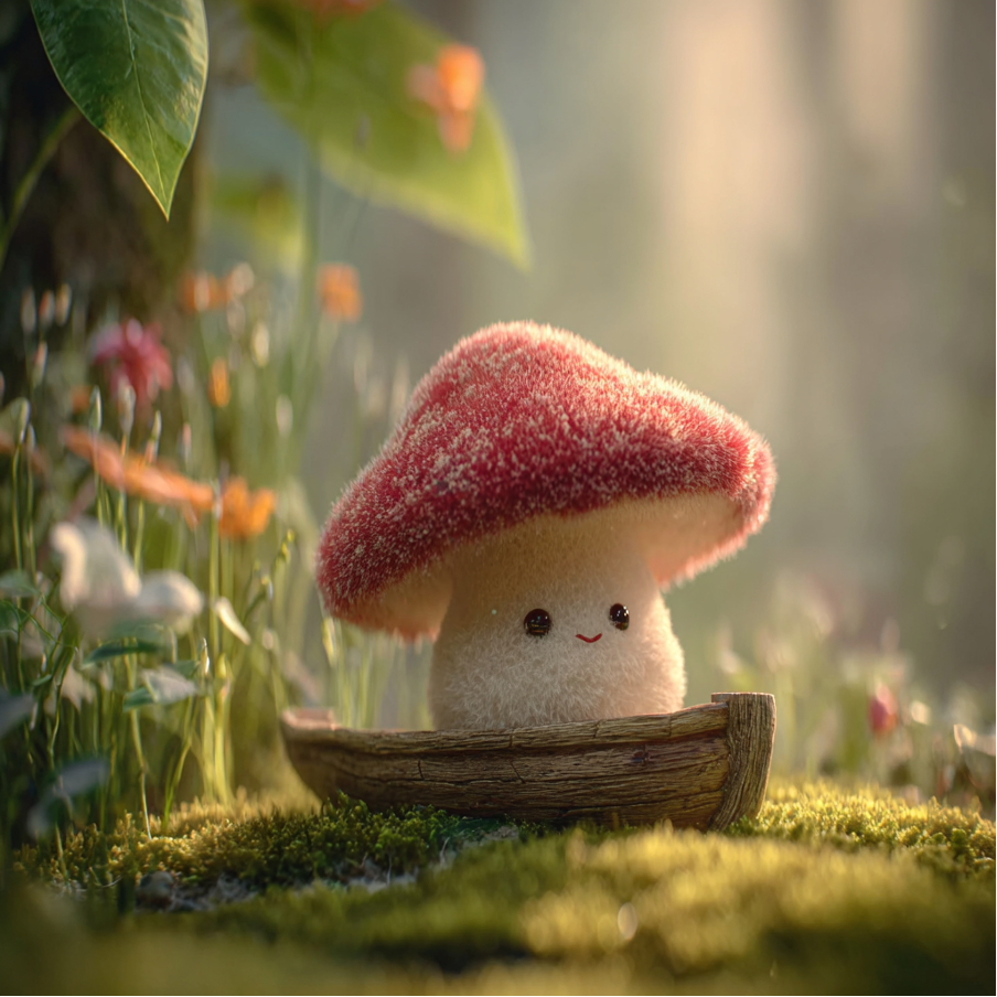 Β«ΠΠ΅ΠΆΠ½ΠΎ-ΡΠΎΠ·ΠΎΠ²ΡΠΉ Π³ΡΠΈΠ± Ρ Π±Π°ΡΡ Π°ΡΠΈΡΡΠΎΠΉ ΡΠ»ΡΠΏΠΊΠΎΠΉ ΡΡΠΎΠΈΡ Π² ΠΌΠΈΠ½ΠΈΠ°ΡΡΡΠ½ΠΎΠΉ Π΄Π΅ΡΠ΅Π²ΡΠ½Π½ΠΎΠΉ Π»ΠΎΠ΄ΠΊΠ΅, Π°ΠΊΠΊΡΡΠ°ΡΠ½ΠΎ ΡΠ°Π·ΠΌΠ΅ΡΡΠ½Π½ΠΎΠΉ ΡΡΠ΅Π΄ΠΈ ΡΡΠ°Π²Ρ Π½Π° Π»Π΅ΡΠ½ΠΎΠΉ ΠΏΠΎΠ»ΡΠ½Π΅, Π³ΡΠΈΠ± ΡΠ»Π΅Π³ΠΊΠ° Π½Π°ΠΊΠ»ΠΎΠ½ΡΠ½ Π²ΠΏΠ΅ΡΡΠ΄, Π±ΡΠ΄ΡΠΎ ΠΏΠ»ΡΠ²ΡΡ, Π²ΠΎΠΊΡΡΠ³ ΠΌΡΠ³ΠΊΠΈΠΉ ΡΠ°ΡΡΠ΅ΡΠ½Π½ΡΠΉ ΡΠΎΠ»Π½Π΅ΡΠ½ΡΠΉ ΡΠ²Π΅Ρ, Π³ΡΡΡΠΎΠΉ Π·Π΅Π»ΡΠ½ΡΠΉ ΠΌΠΎΡ ΠΈ ΠΏΠΎΠ»Π΅Π²ΡΠ΅ ΡΠ²Π΅ΡΡ, Π»ΡΠ³ΠΊΠ°Ρ Π΄ΡΠΌΠΊΠ°, ΡΠΊΠ°Π·ΠΎΡΠ½Π°Ρ Π°ΡΠΌΠΎΡΡΠ΅ΡΠ°, Π²ΡΡΠΎΠΊΠ°Ρ Π΄Π΅ΡΠ°Π»ΠΈΠ·Π°ΡΠΈΡ, ΡΠ΅Π°Π»ΠΈΡΡΠΈΡΠ½ΡΠΉ ΡΡΠΈΠ»Ρ.Β»