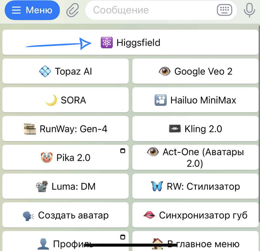 🏠 Главное меню > 🎬 Видео будущего > ⚛️ Higgsfield
