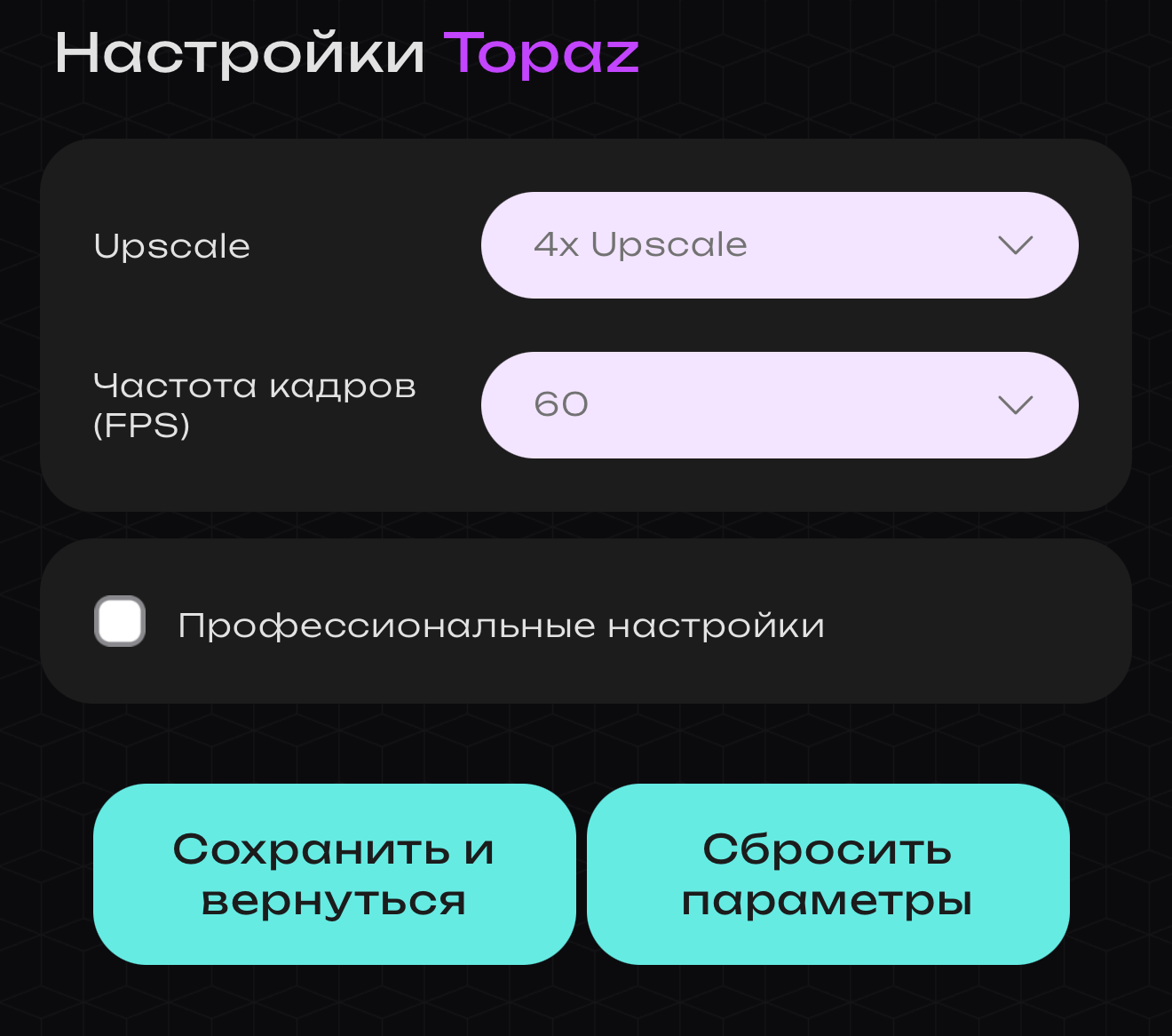 🏠 Главное меню > 🎬 Видео будущего > 💠 Topaz AI