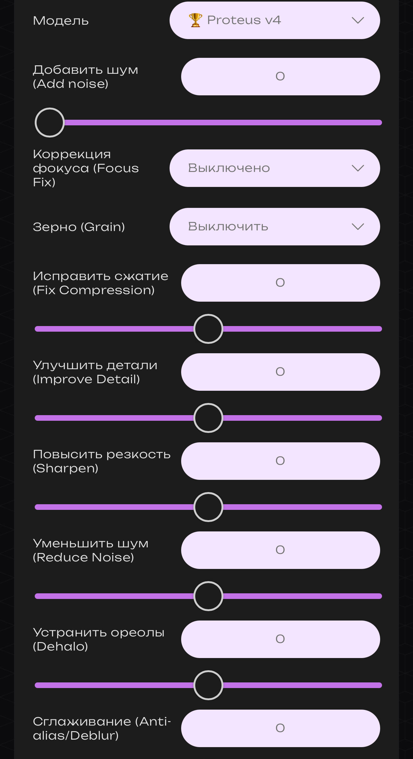 Модель, предназначенная для добавления микродеталей на чистых или предварительно обработанных исходниках в разрешении 720–1080p. Часто используется как второй проход после Artemis или Proteus — помогает “вытянуть” текстуры тканей, волос, мелких поверхностей, усиливая естественную детализацию без артефактов.