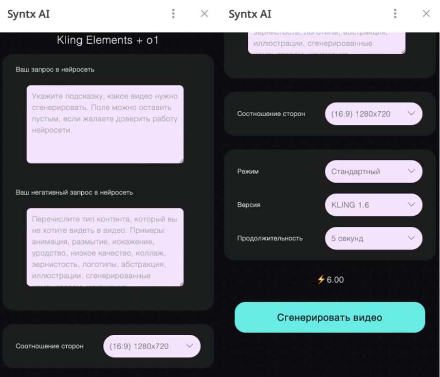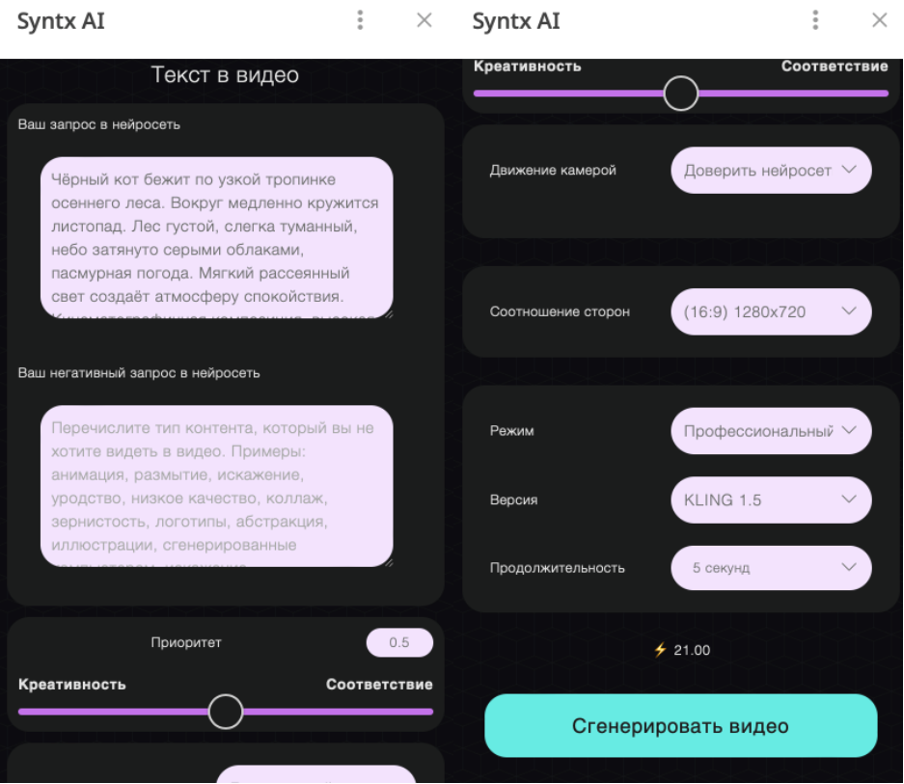 При использовании текстового запроса рекомендуется указать главный объект, его действие и движение, которое должно быть взято за основу.