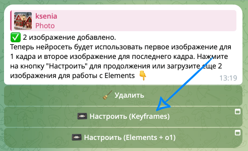После загрузки двух изображений вам будет предложен выбор из двух функций. Если требуется получить плавный переход между кадрами, используйте функцию Keyframes.
