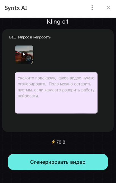 Ввод текстового запроса необязателен: если оставить поле пустым и загрузить только изображение, нейросеть самостоятельно определит действие в сцене.