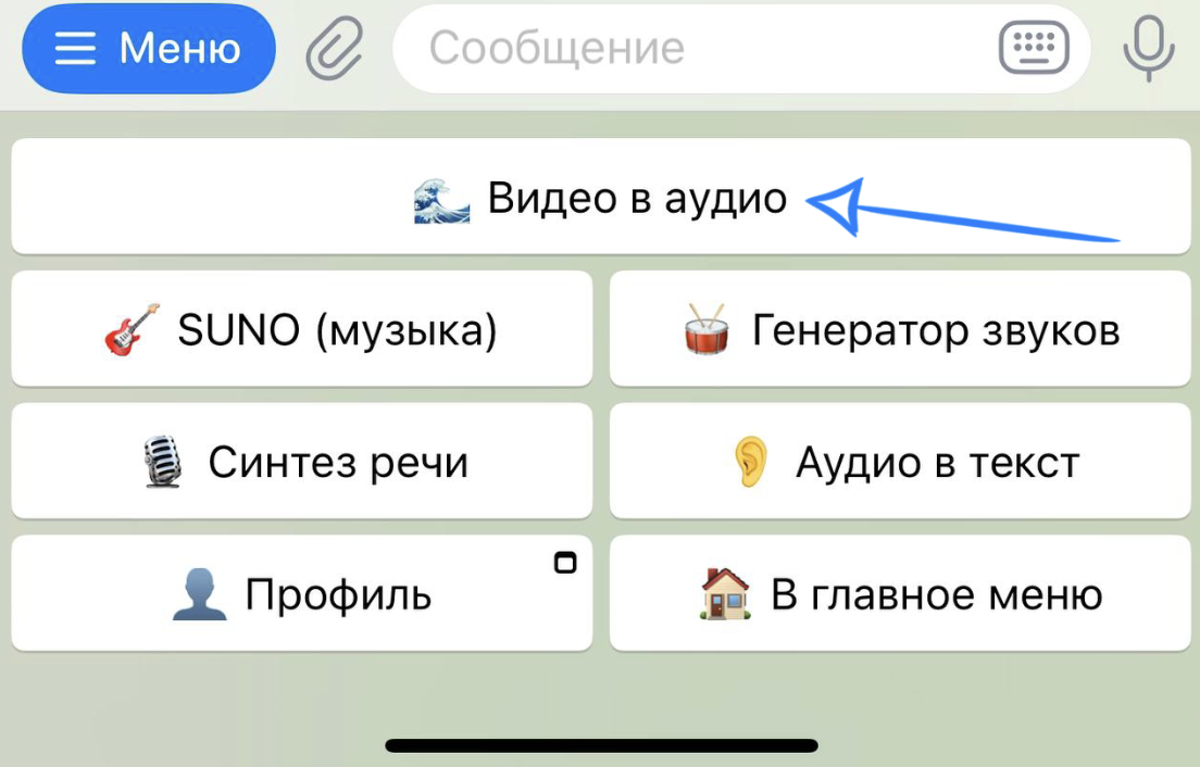 🏠 Главное меню > 🔊 Аудио с ИИ > 🌊 Видео в аудио